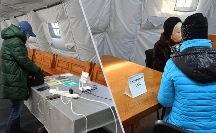 В Дарницком районе Киева на базе лицея №315 развернули опорный пункт для жителей. Здесь есть горячая вода, аккумуляторы для подзарядки техники, подключена мобильная котельная.