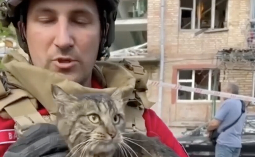 Посеред трагедії масованого обстрілу Києва 24 квітня сталася зворушлива подія — рятувальники ДСНС витягли живого кота з-під завалів зруйнованого будинку у Святошинському районі. Трамвай дізнався, що тварина дивом вижила після руйнування будинка.