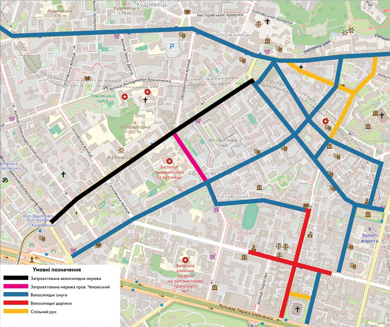 Загалом варто зазначити, що велосипедна мережа в місцевості Старий Київ та Афанасівський Яр — одна з небагатьох, яка більш-менш зв'язана та не має розривів.
