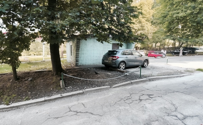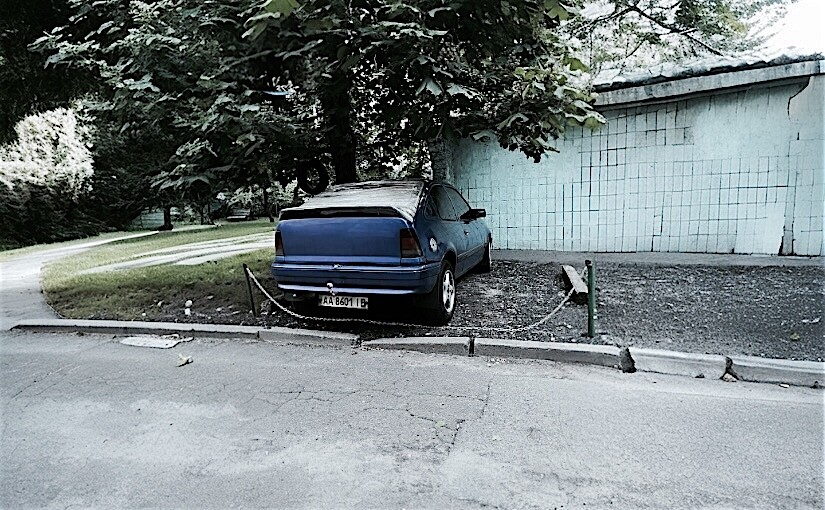 На бульварі Ігоря Шамо у мікрорайоні Русанівка водій старого автомобіля самовільно захопив частину прибудинкової території та огородив її ланцюжком із замком. Мешканці будинку скаржаться на систематичне порушення правил користування спільною територією та агресивну поведінку порушника. Трамвай з'ясував деталі ситуації та способи вирішення проблеми.