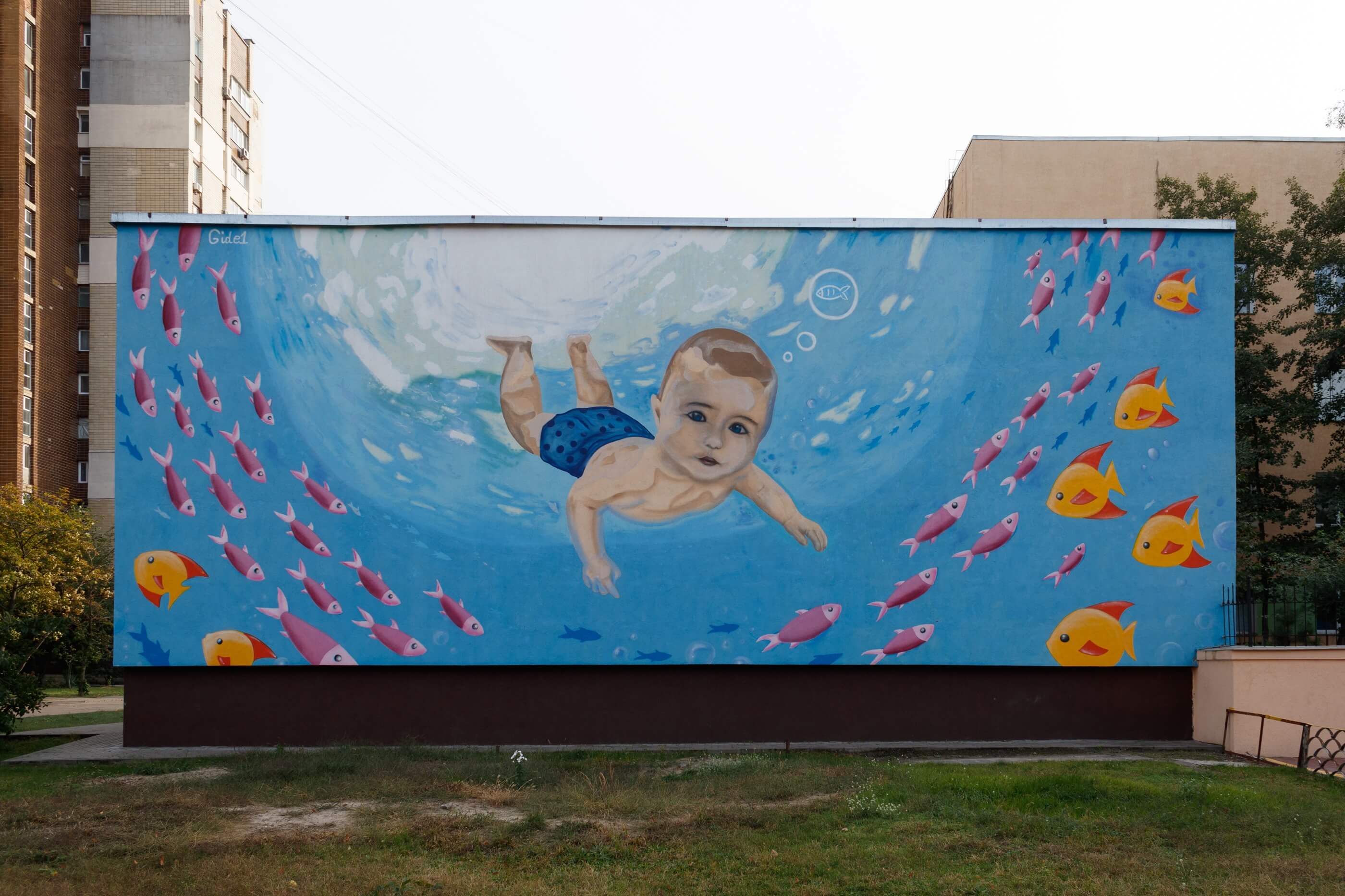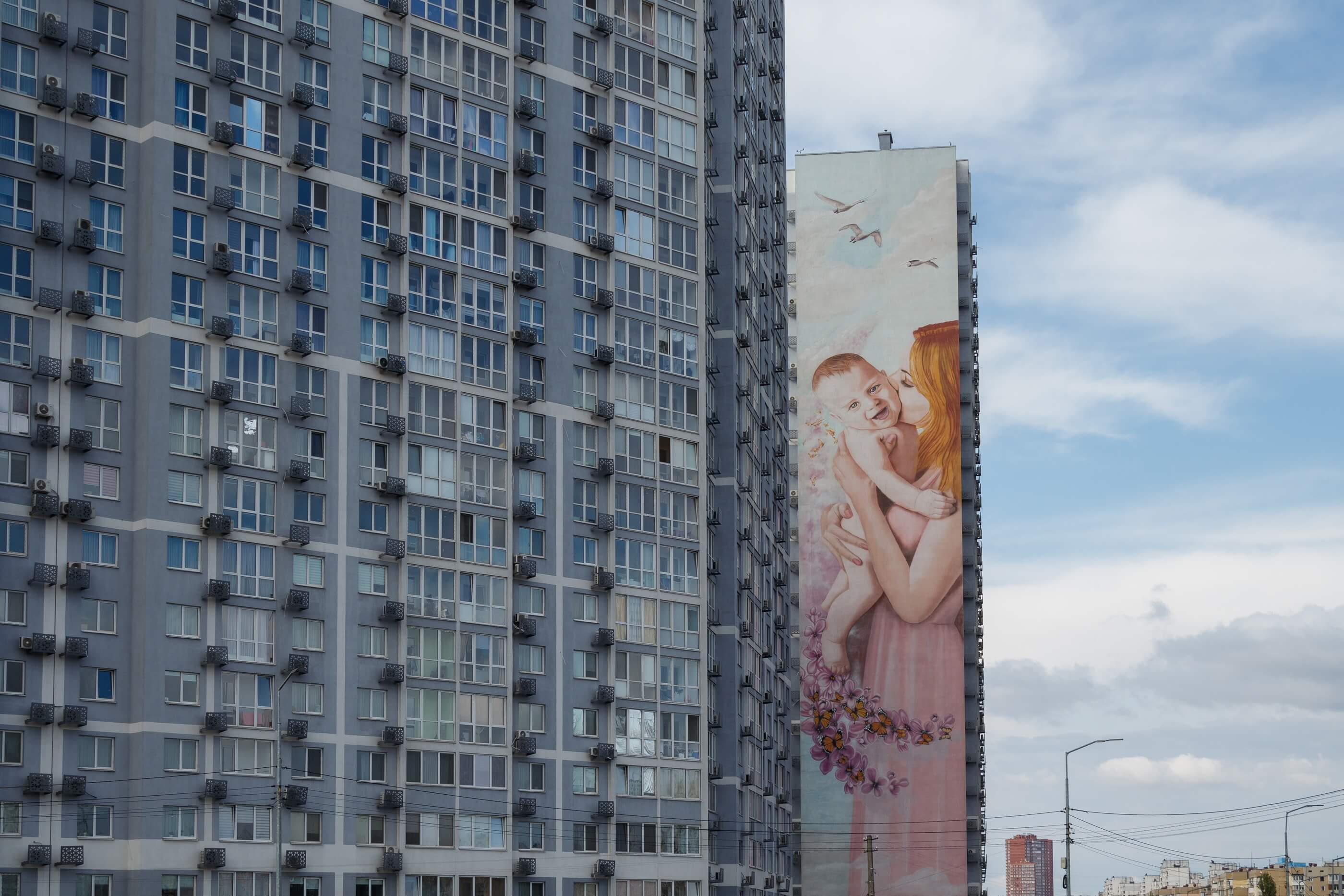 👇 Мурал-присвята материнству на вулиці Ревуцького, 40Б (ЖК "Лебединий"). Автори: Володимир Пастушак, Юлія Мастерс, Андрій Сороків (PastArt Studio).