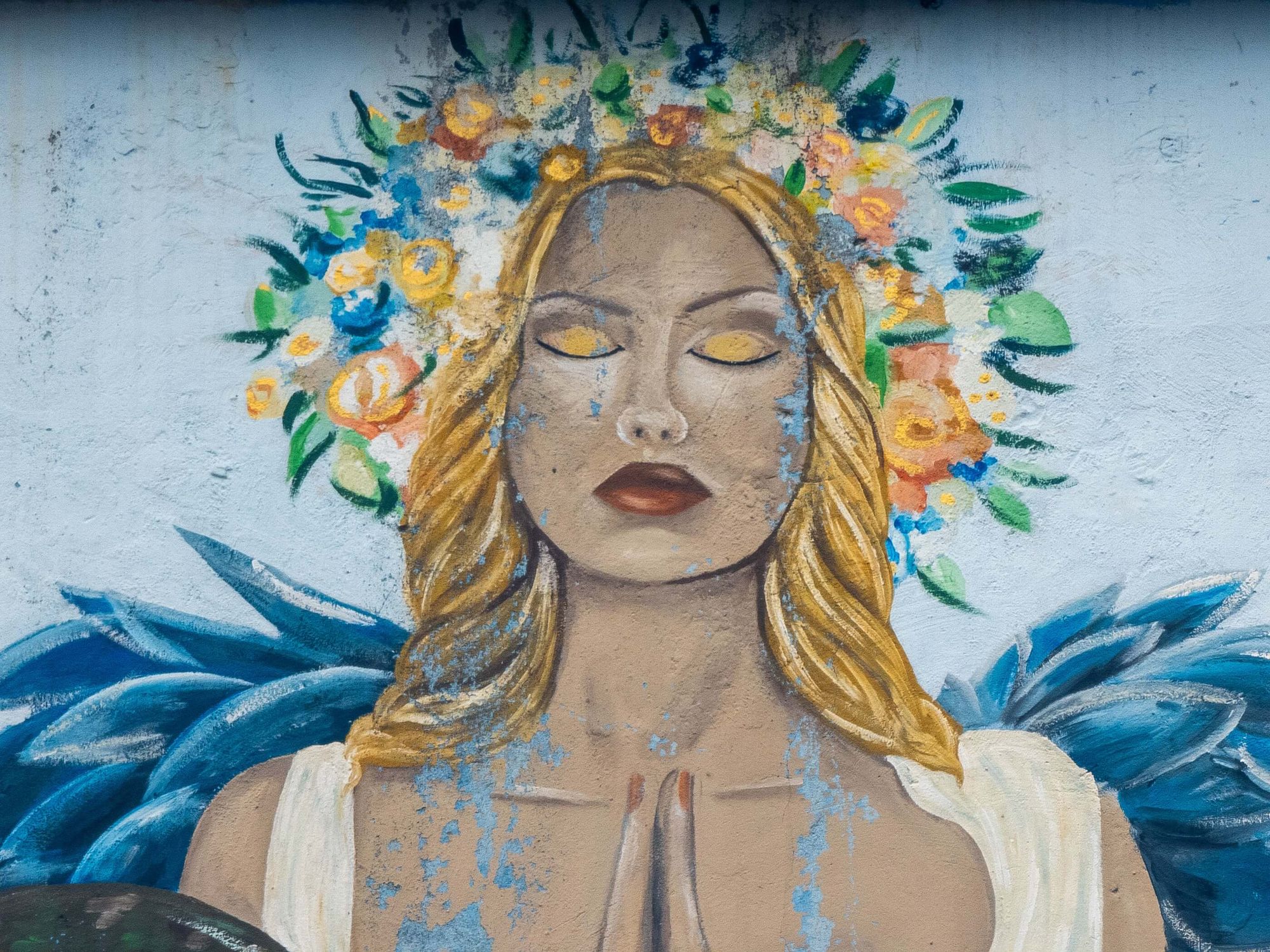 👇 Мурал Покрови Пресвятої Богородиці на кінотеатрі "Екран", проспект Берестейський, 117.